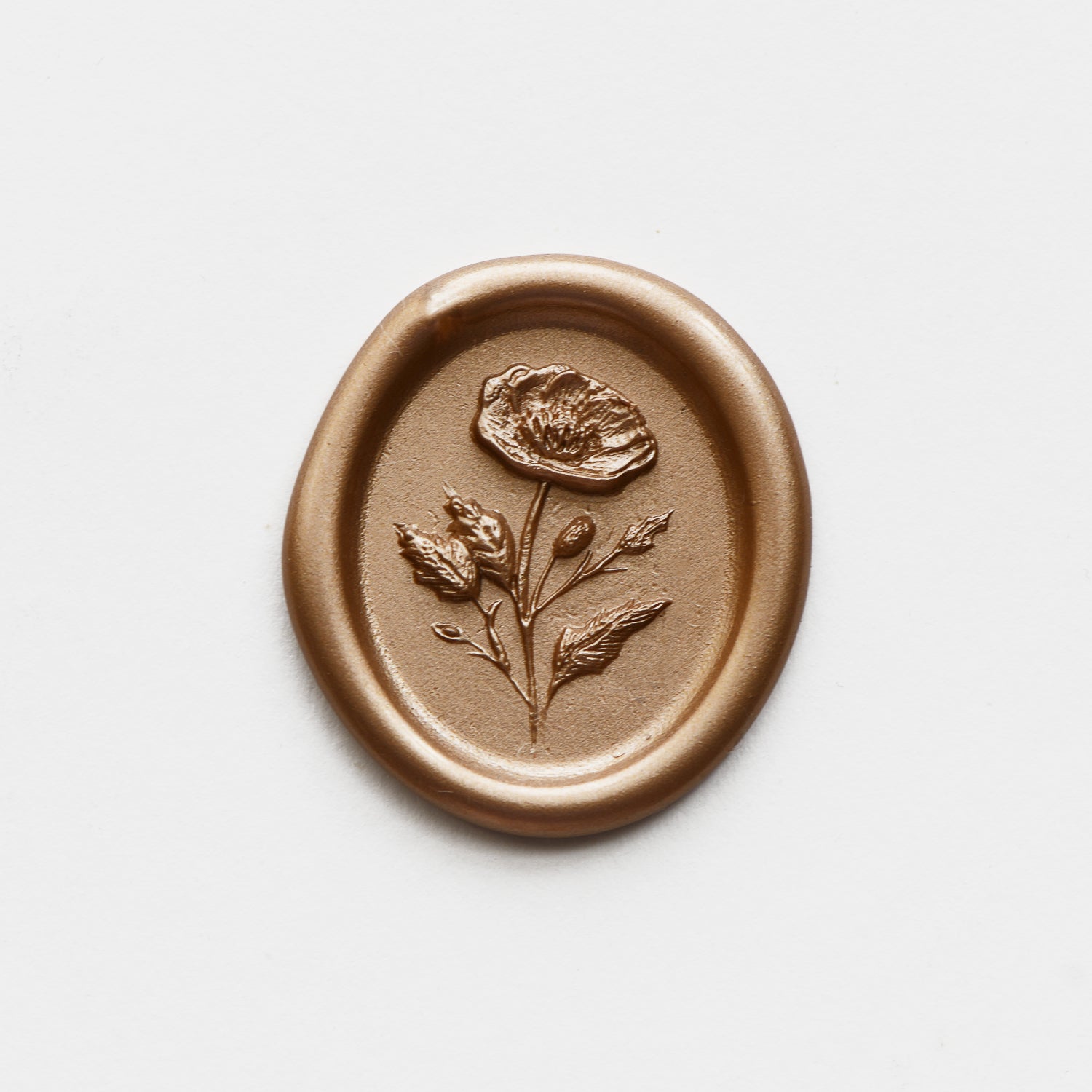 A timeless design featuring a delicate 3D poppy motif, set within a vintage oval shape. Each edge is carefully polished by hand, giving the stamp a refined finish and artisanal touch.