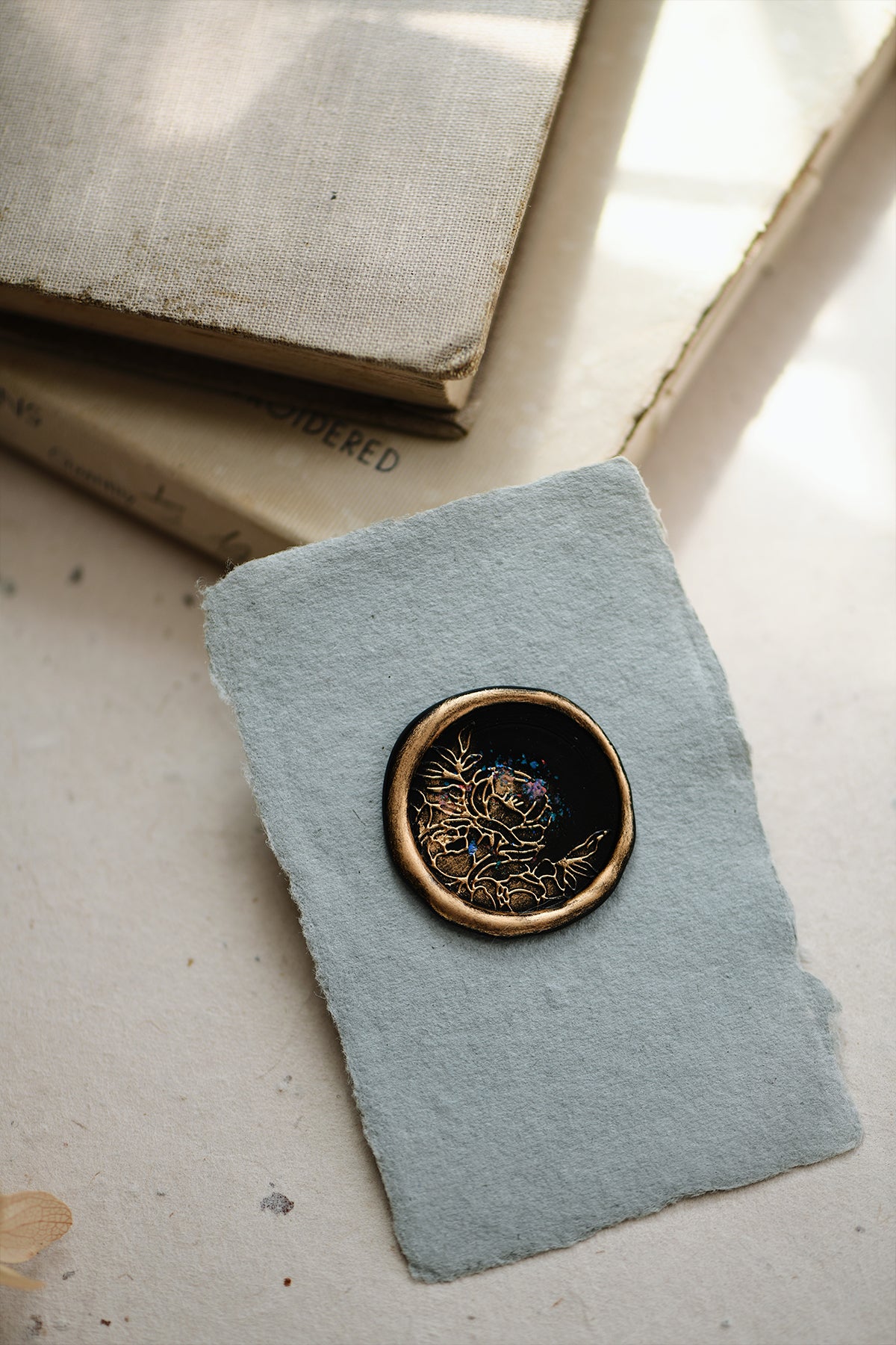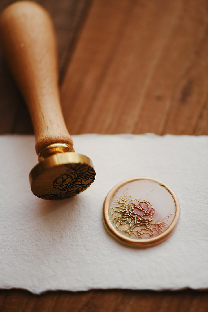 Peony flower wax stamp - features delicate thin-line engraving, creating an intricate lace-like effect that adds minimalist elegance to your stationery.